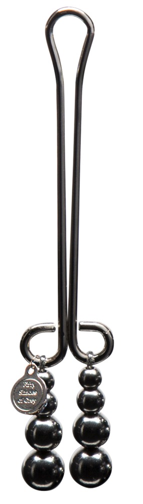 Klips na łechtaczkę z prełkami w kolorze srebrnym. Długość: 6,5 cm.
