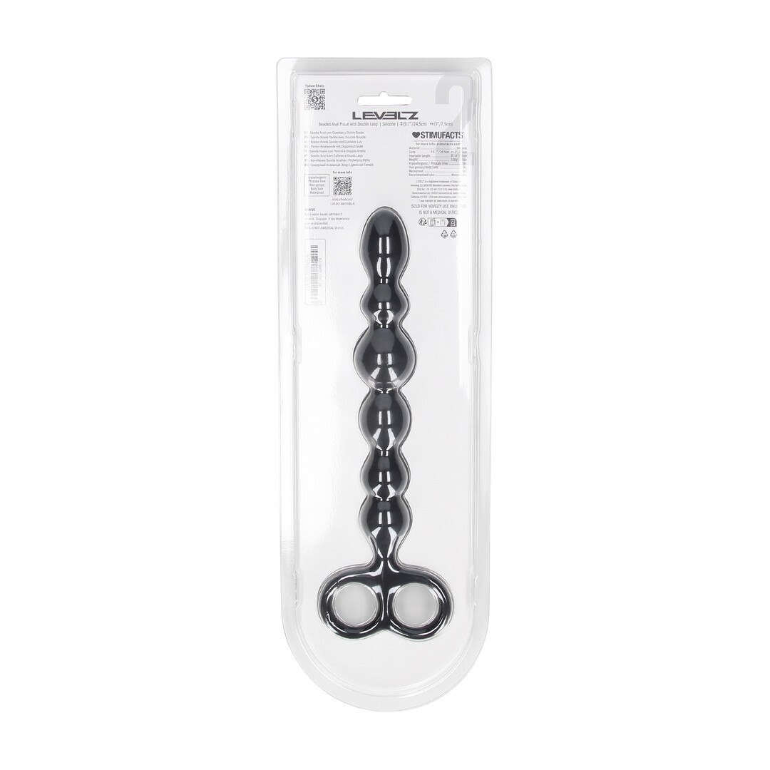 Beaded Silicone Anal Probe with Double Loop - Black