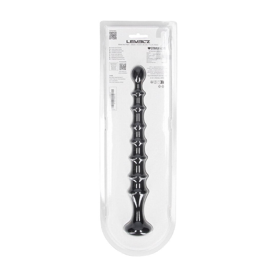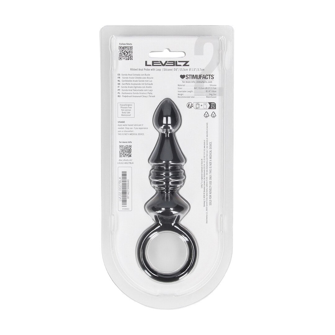 Ribbed Silicone Anal Probe with Loop - Black