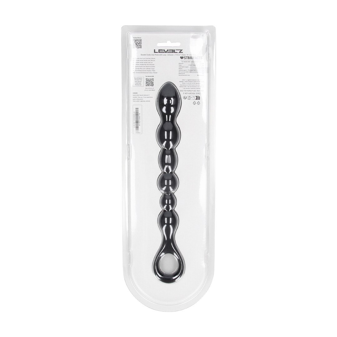 Beaded Snake Silicone Anal Probe with Loop - Black