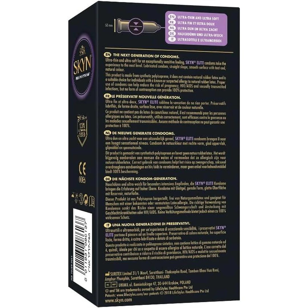 Jest on aż o 20% cieńszy od swojego poprzednika SKYN Original. Ich cienkość to zaledwie ok. 0,028 mm grubości, bez lateksu. Pod względem stosunku jakości do ceny jest to jedna z najlepszych opcji. Wykonane z poliizoprenu, znanego również jako Sensoprene. Ze względu na cienkość i specjalny materiał, po założeniu prezerwatywa sprawia wrażenie, jakby w ogóle nie istniała. Bardziej miękkie, wygodniejsze i mocniejsze niż prezerwatywy poliuretanowe. Udowodniono medycznie, że zapewnia większą wrażliwość niż konwencjonalne prezerwatywy